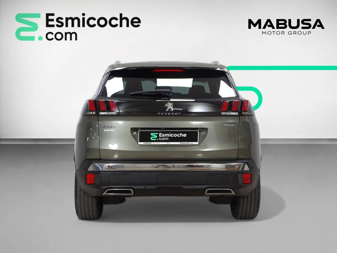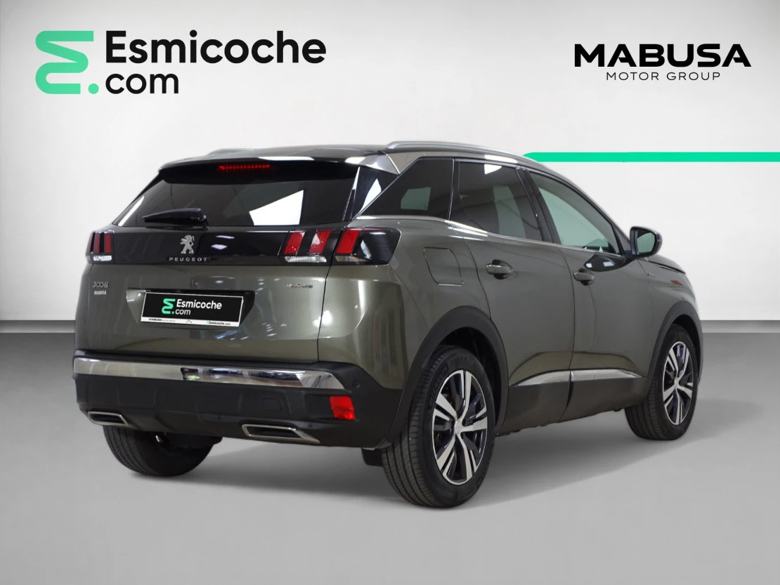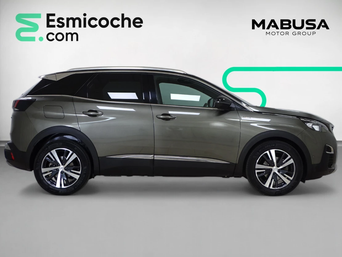Interior: Espacioso y lujoso, con materiales de alta calidad como cuero y aluminio, panel de instrumentos digital i-Cockpit de 12.3 pulgadas, iluminación ambiental configurable, detalles específicos GT Line como el volante y los pedales de aluminio